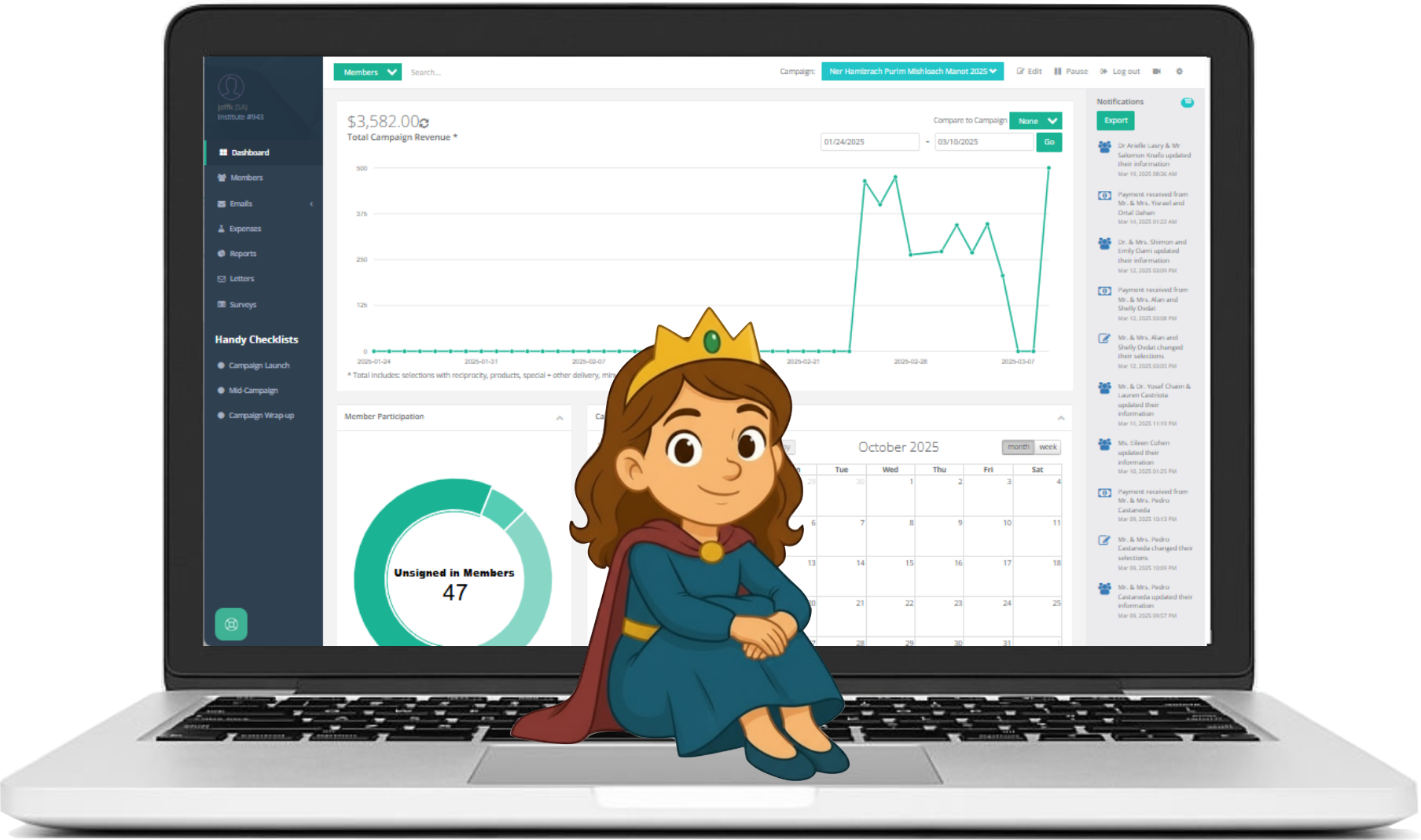 You fully manage your Shalach Manos fundraiser over the internet - no downloads!